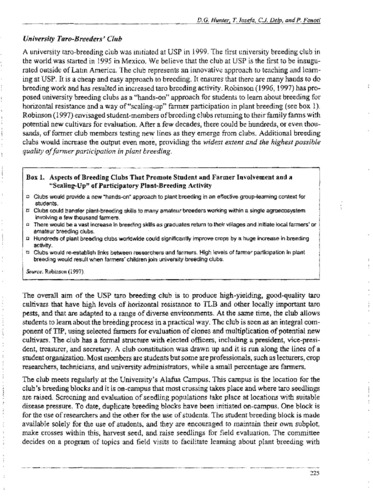 The importance of appropriate genetic variability for plant breeding work in cassava is highlighted; genetic erosion has been slight and therefore efforts should be made to collect and maintain germplasm of both cultivated and wild species. It is necessary to carry out physiological studies aiming at the control of floral initiation in cassava and to explore other breeding methods such as recurrent selection, self-pollination, and selection within and between S1 progeny. The different cassava environments should be classified and grouped in order in define breeding objetives adequately. Currently, selection criteria are focussed toward adaptation to the agroecosystem, morpholoigical characteristics, potential to improve physiological processes (LAI, HI, photosynthesis) and quality factors of cassava for the different markets. The role of biotechnology as a tool for plant breeders is discussed; the most immediate application of biotechnology in cassava is in the conservation, exchange, and characterization of germplasm. Future applications can be in the field of genetic engineering to eliminate HCN from materials or incorporate other desirable genes for the production of toxins conferring resistance to insects. From the initial stages of screening, plant breeders should be aware of the conditions and needs of target farmers to assure successful technology transfer. The objectives of germplasm exchange should be clearly defined and basic information should be provided on climate, soils, prevalent pests and diseases, etc. Training activities in the the validation and transfer of new technology should be enhanced; likewise, the assessment of materials should not be based on yield alone; production, processing, and marketing data should also be considered. (CIAT)