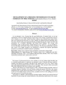 Development of a freezing methodology in liquid nitrogen of tree tomato (Cyphomandra betacea (Cav.) Sendt) seeds