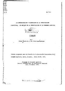 La administración y planeación de la investigación científica : un enfoque en la investigación de la economía agrícola