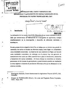 Estimación del costo y beneficio del desarrollo y lanzamiento de nuevas variedades en el Programa de Pastos Tropicales del CIAT