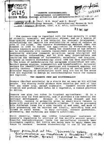 Informe de la primera reunión de la mesa de consulta del proyecto CIAT - IIT - UNIVALLE - CIID sobre producción y uso de harina de yuca para consumo humano, 20 de marzo de 1986